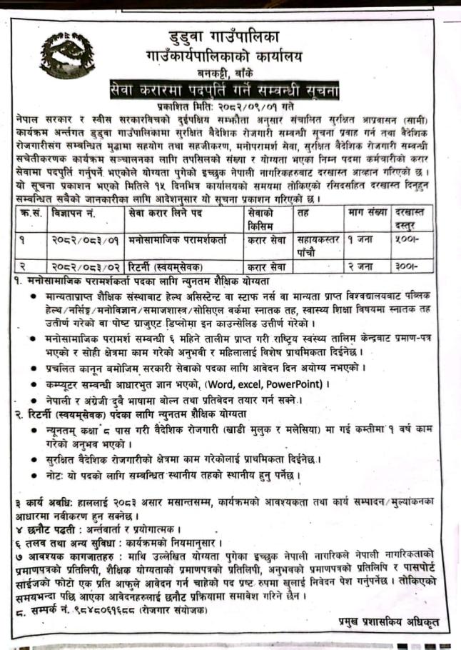 सेवा करारमा पदपूर्ति गर्ने सम्बन्धि सूचना !!